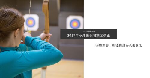 【編集後記】逆算思考 到達目標から考える *********************************** ケアマネ試験 問題 2017(平成29)年の介護保険制度改正について正しいものはどれか。3つ選べ。1 介護医療院の創設 2 共生型サービスの創…