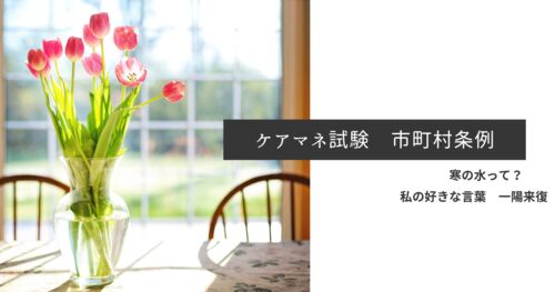 【編集後記】寒の水ってなに?一陽来復 *********************************** ケアマネ試験 問題 介護保険法において市町村が条例で定めることとされている事項として正しいものはどれか。3つ選べ。 1 保健福祉事業 2…
