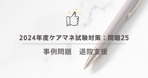 2024年度ケアマネ試験 ☆☆☆☆☆☆☆☆☆☆☆☆☆☆☆☆☆☆☆☆☆☆ 問題25 Aさん(85歳、女性)は、長女と二人暮らしである。Aさんは自宅で転倒して腰椎を圧迫骨折し、1か月入院した。退院後、筋力低下が著しく、要支援2の認定を受けた。介護支援専門員が訪問したところ、Aさん…