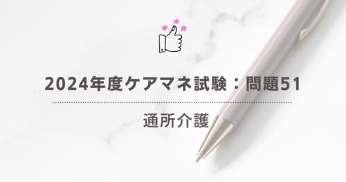 2024年度ケアマネ試験 ☆☆☆☆☆☆☆☆☆☆☆☆☆☆☆☆☆☆☆☆☆☆ 問題51 介護保険における通所介護について正しいものはどれか。3つ選べ。 1.サービスの所要時間が同じ区分の利用者に対しては、サービス提供開始時刻を同じにしなければならない。 2.指定通所介護事業所の…