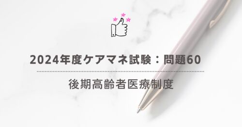 2024年度ケアマネ試験 ☆☆☆☆☆☆☆☆☆☆☆☆☆☆☆☆☆☆☆☆☆☆ 問題60 後期高齢者医療制度について正しいものはどれか。3つ選べ。 1.保険料は、厚生労働省令で定める。 2.生活保護受給者は、被保険者にならない。 3.被保険者には、65歳以上75歳未満であって、後期高…
